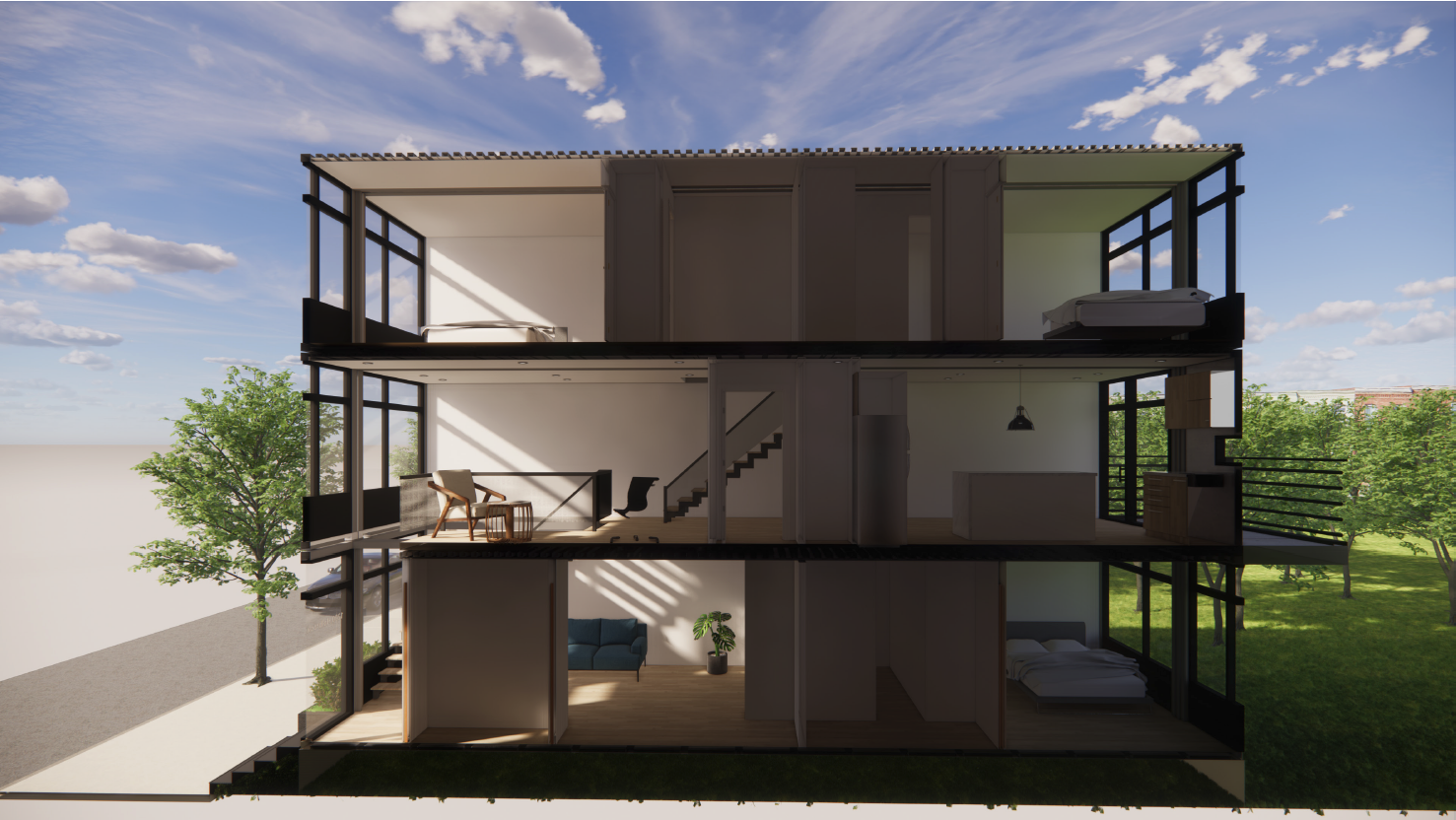 As project manager, we also led the coordination of a team of civil and structural engineers, ensuring that design intent aligned with permitting and constructability standards. Through a collaborative and community-centered process, the project is positioned to serve as a replicable model for affordable, modular urban housing in Baltimore.
